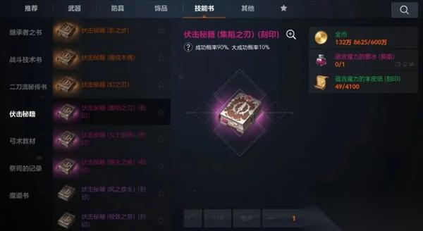 考虑到部分蓝色技能书刷小怪即可获取,我们可以按上述规则买一些技能后,剩下通过刷怪获得。