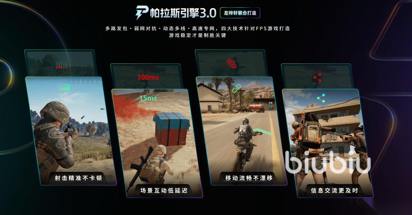 针对像逃出生天这种对延迟率高要求的在线游戏,biubiu升级后搭载强力的帕拉斯引擎3.0,联合PUBG冠军选手aixleft深度参与调试,智能检测你的网络状况,像个贴心管家一样实时展示延迟率、掉包率,识别拥堵节点毫秒级切换最优线路,动态多路发包,从根源上为你解决跨区域传输受阻导致的闪退窘境。它的适用范围十分广,无论是校园网还是家用,对抗弱网能力强,都能提供不错的效果。