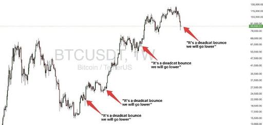 在后续帖子中,安东尼发布他对主导加密货币市场的情绪化交易模式和悲观情绪进行了尖锐的批判。他认为,许多坚持认为比特币涨势已经结束的交易员,会继续逢高做空,逢高做空。死猫弹跳即使价格上涨。