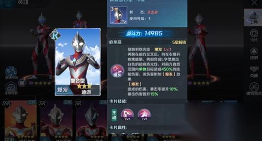 在队伍中,核心的输出就是主站位,会直接决定整体的上限。在选择主战角色时,建议先看一下稀有度,自然应该挑选ssr级别的角色。如果稀有度是相同的,那就需要选择星级更高的。但如果两者是在同一个水平就可以选择爆发型的角色,例如迪迦复合型,还有捷德。这一类型在短时间内就可以打出爆发性的伤害,可以击破敌方的核心,扭转战局。例如迪迦复合型三星就有很不错的战斗力。哉佩利敖光线必杀技能就成为了输出利器,在交叉蓄力之后释放一个超高光热线,可以针对前方单体目标造成450%的技能伤害,还可以额外的提升15%的暴击伤害以及暴击率。