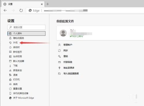 3、在打开的窗口界面中,点击左侧中的"外观"选项。