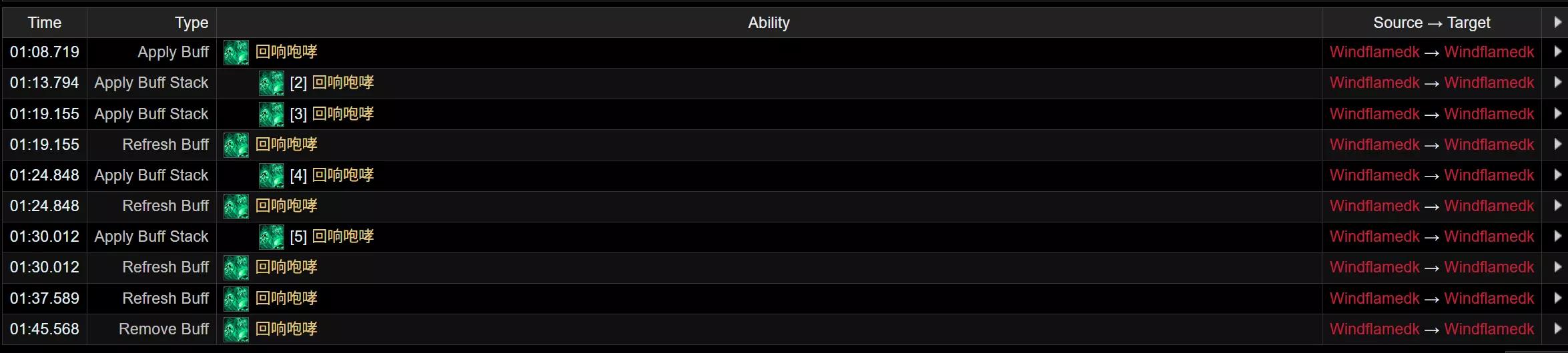 回响咆哮持续8秒,每次叠层都会刷新持续时间。