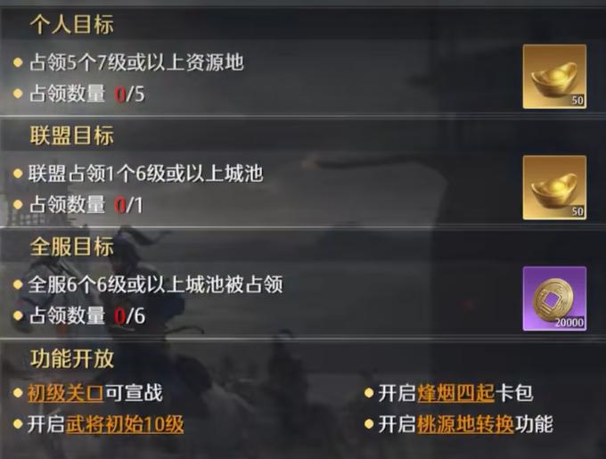 联盟系统里面比较重要的玩法就是盟会战了,也就是说和其他的联盟易旗打仗,互相争夺领土。这种战斗规模还是比较大的,一场估计都有几百人参加战斗,谁如果赢了就可以得到更多的资源区,联盟也能够发展得更快。在赢了比赛哦之后,就能得到新的资源区了。若是资源多了起来,发展直线上升,所以大家还是不要错过这样的玩法,会有不少的好处。