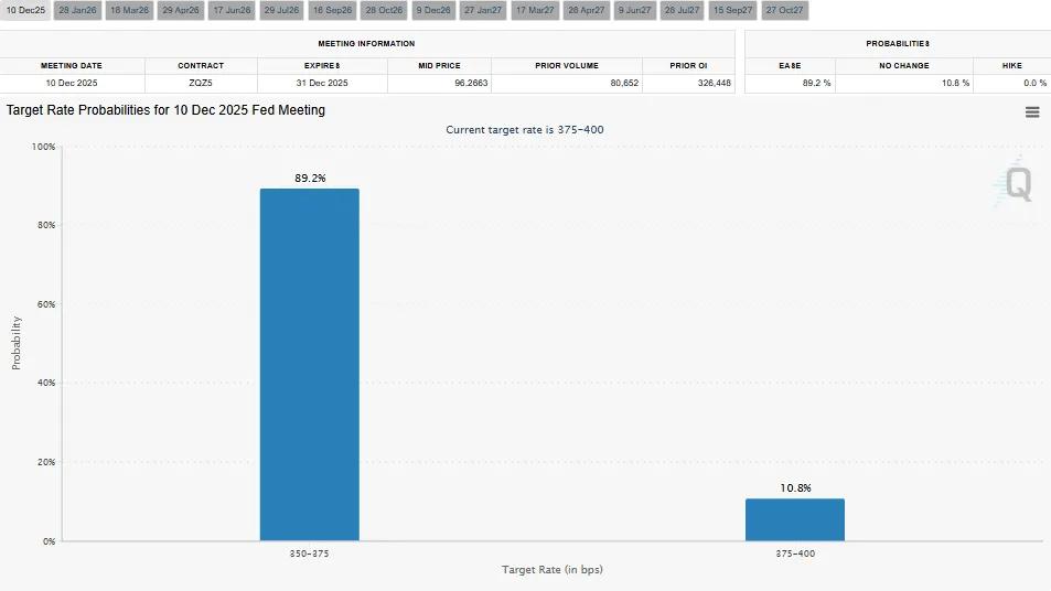 美国经济数据疲软、通胀信号降温以及劳动力市场指标走弱,已显著改变了市场预期。交易员们现在普遍认为美联储迟早会改变政策方向。这种转变降低了包括加密货币在内的各种风险资产的恐慌情绪,并帮助比特币在此前机构买家入场的区域站稳了脚跟。