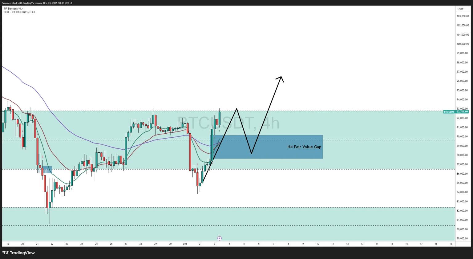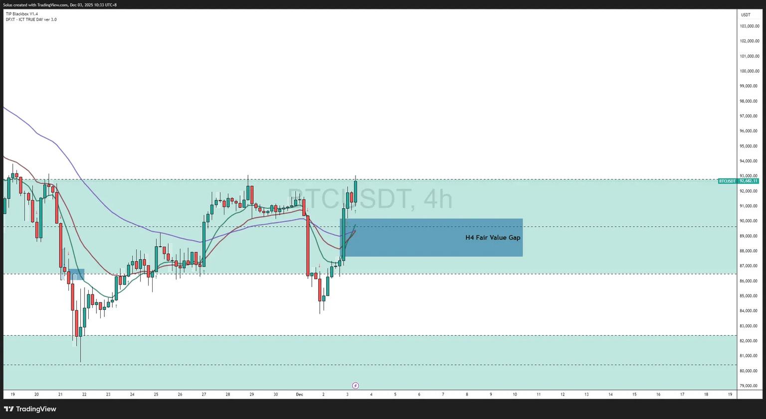 - 回溯到H4 公允价值缺口(接近 89,000 美元至 90,000 美元)