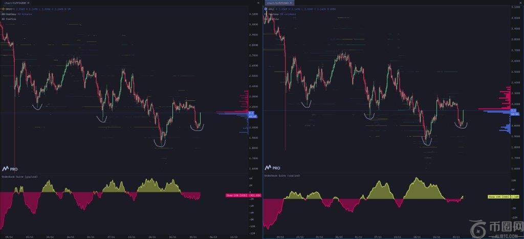 他的8小时图表显示,月度滚动VWAP是关键转折点。“多头需要重新夺回……”每月 rVWAPDom表示:“价格在2.22美元左右,这将是反弹至2.50美元附近的转折点。” 2.50美元附近的区域与较高的成交量加权平均价(VWAP)区域以及Osemka预测区间的上半部分相吻合。