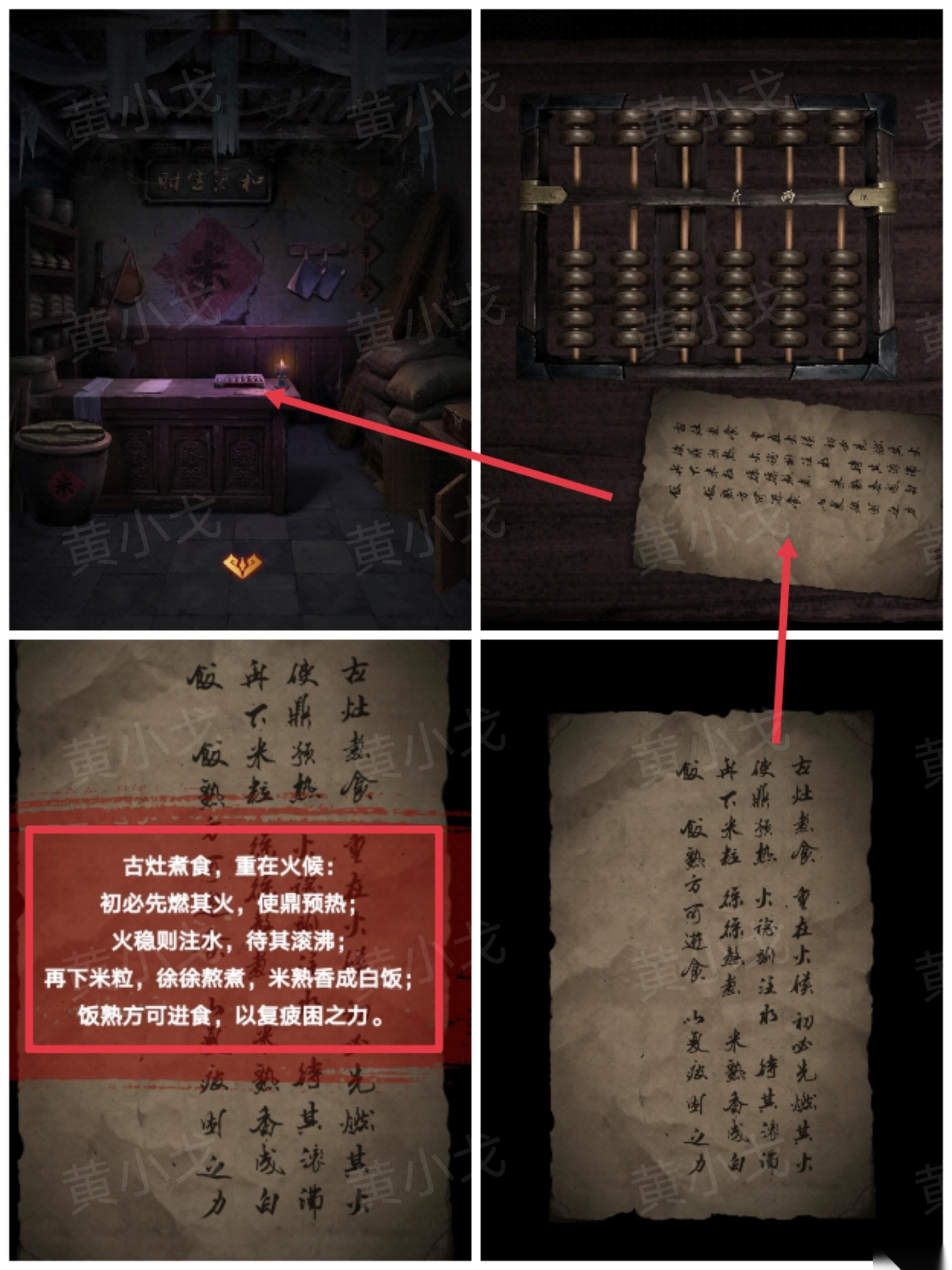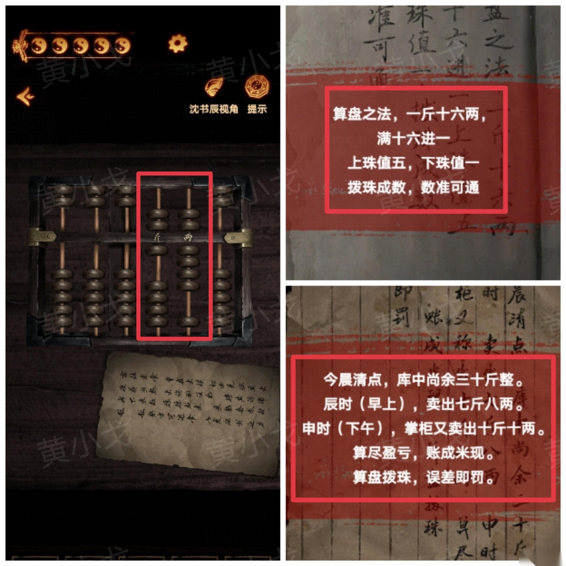 16、根据[柳佳宁]视角置物架上的书上的线索和账单上的线索,调整算盘,打开米缸