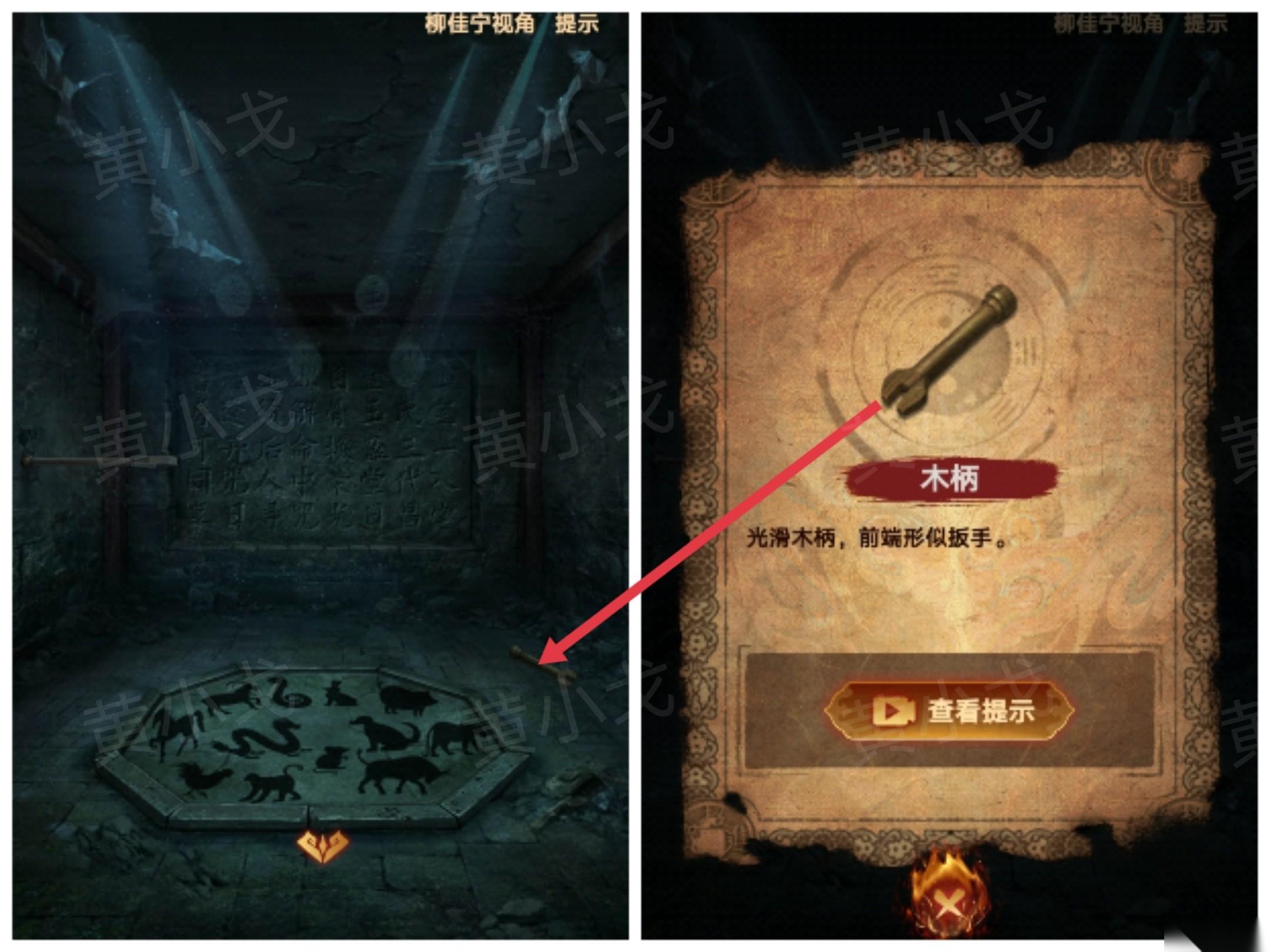 49、把【木柄】插入长方形凹槽,打开石门