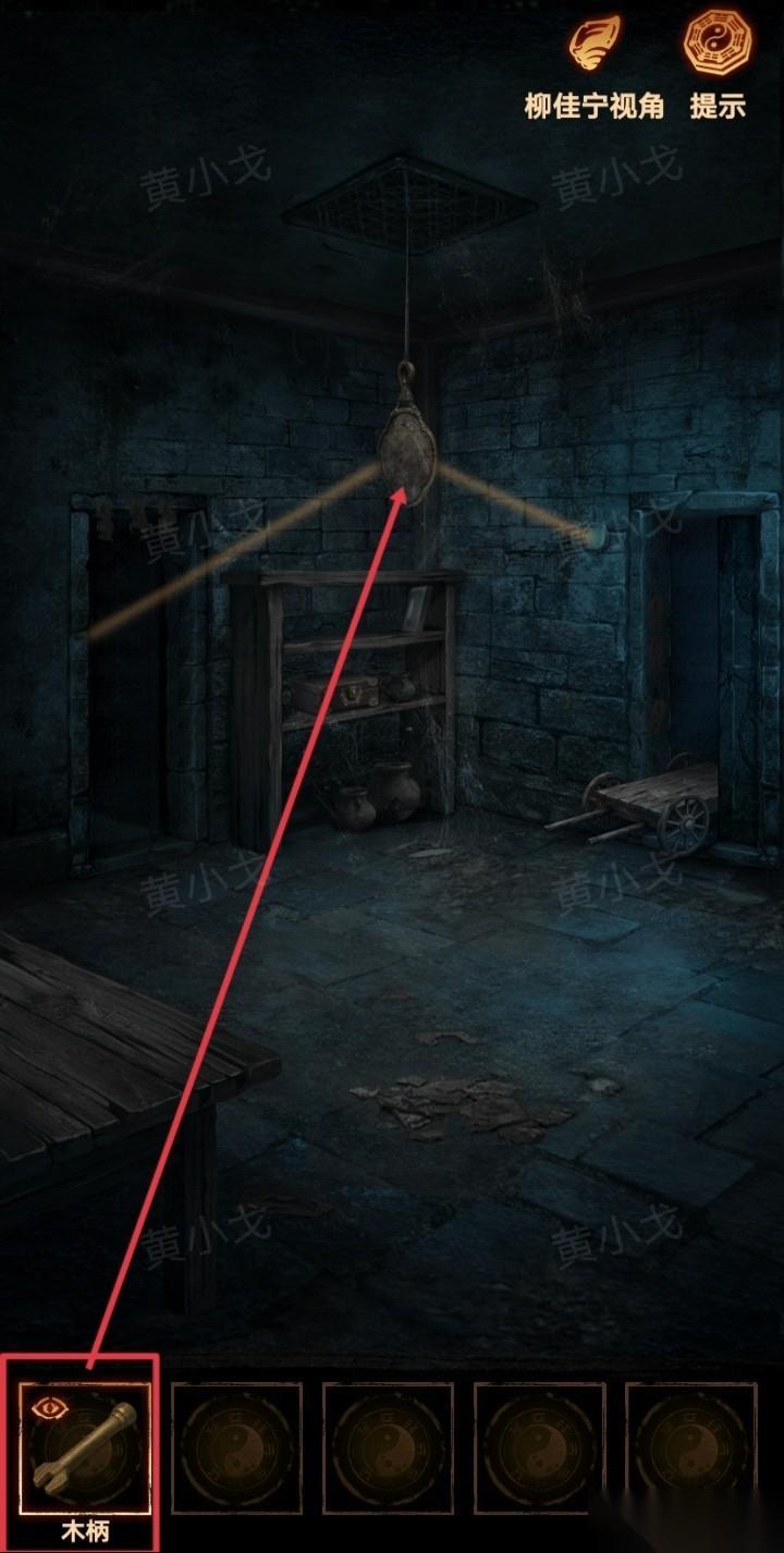 28、用【木柄】调整铜镜的角度,使光线射向左侧桌子上的装置