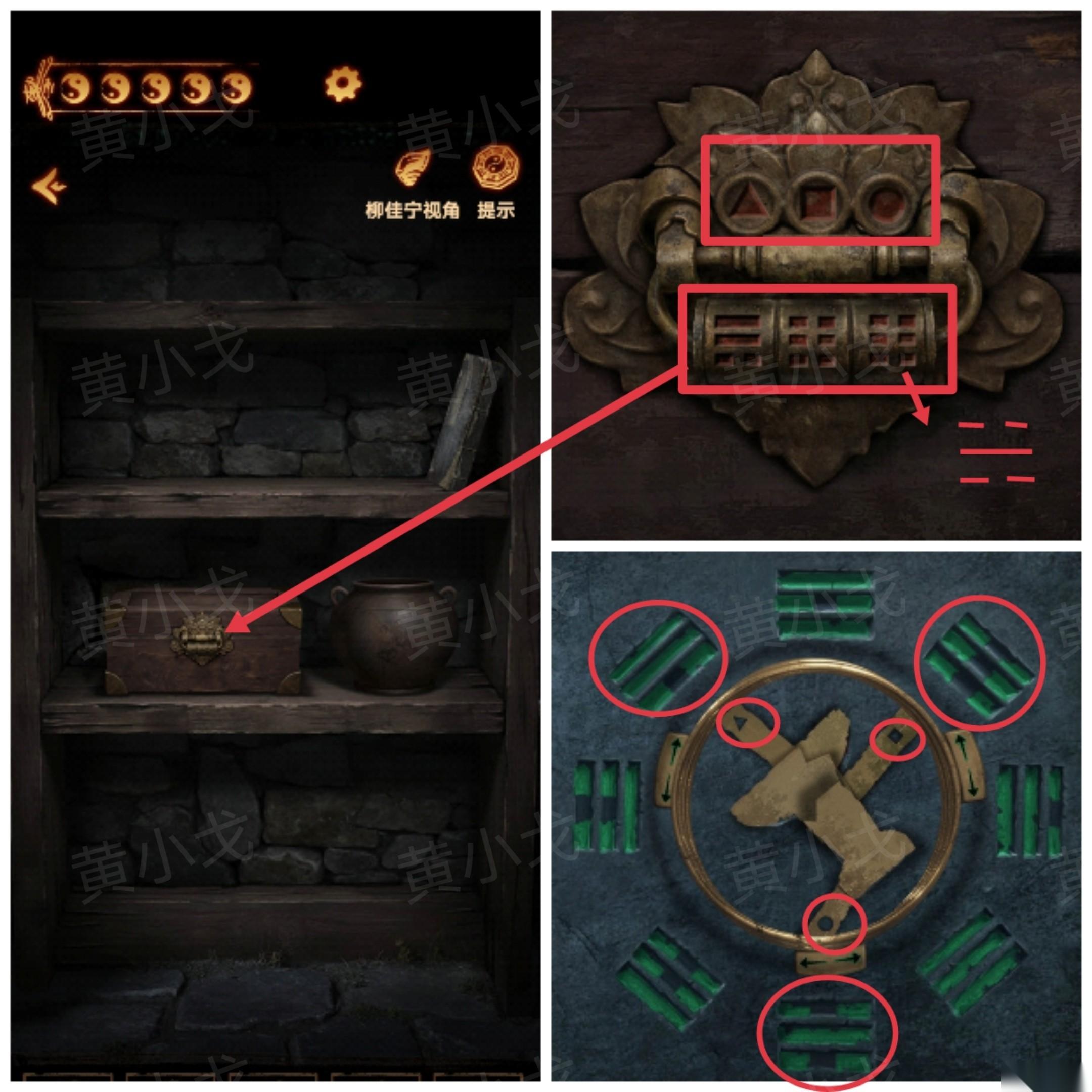 6、点击盒子上的密码锁,根据上面的提示,结合对联上的线索,调整密码锁