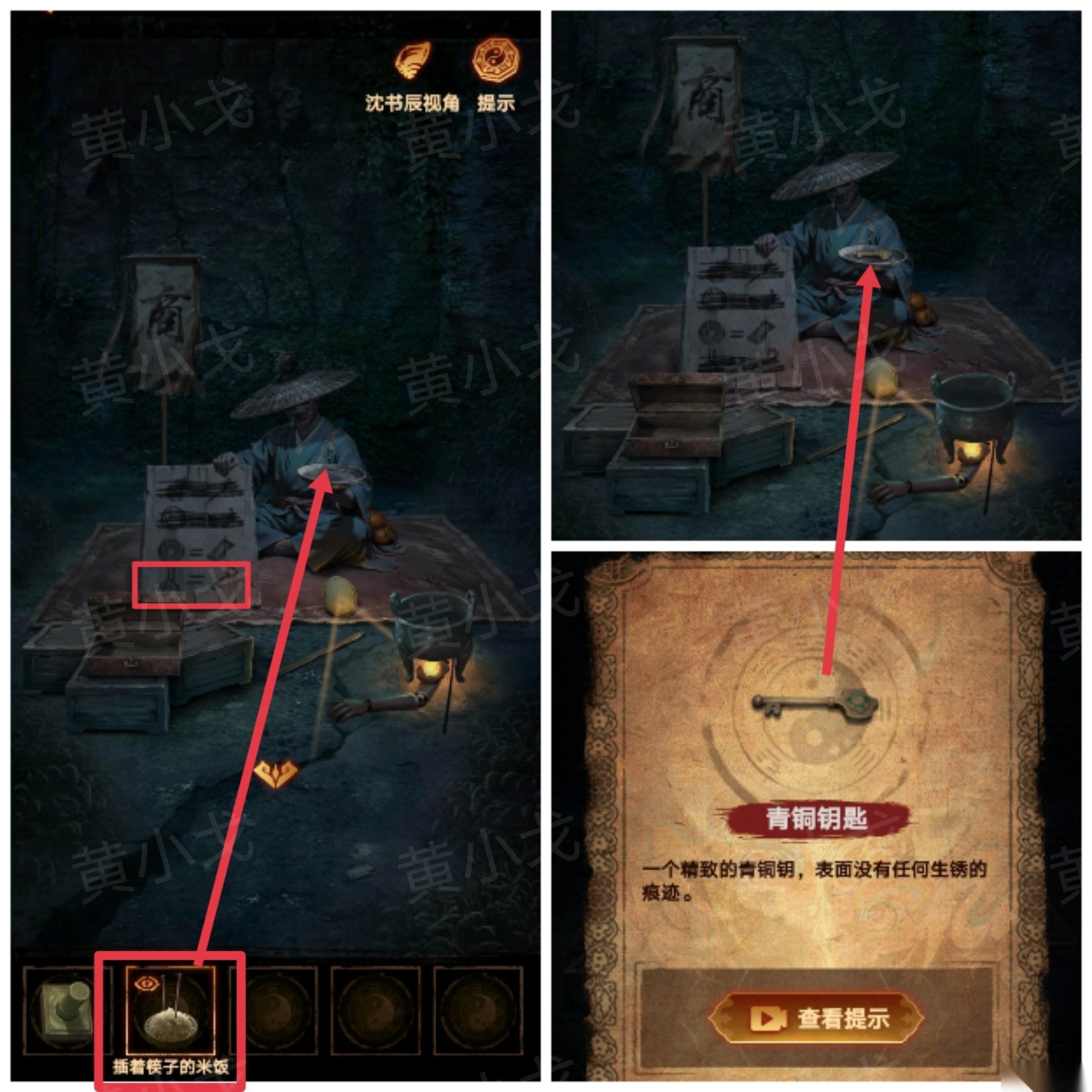 36、根据木牌上的线索,拿【插着筷子的米饭】给商人人偶,获得【青铜钥匙】