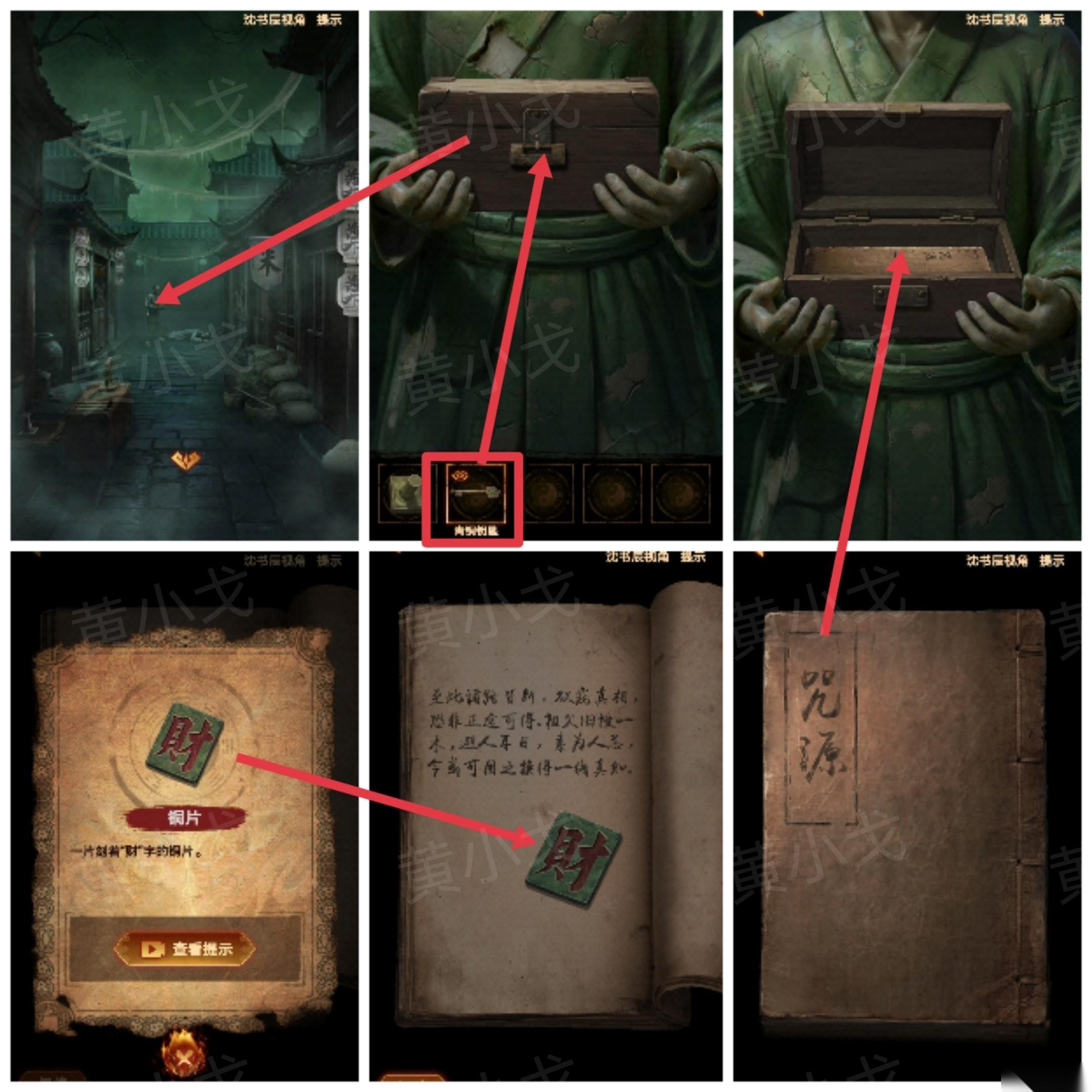 37、点击人偶手上的盒子,用【青铜钥匙】打开,查看《咒源》,获得【铜片】