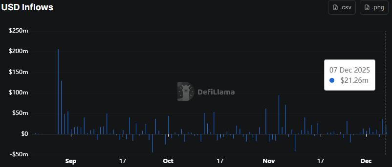根据DeFiLlama该借贷协议在 12 月 6 日当天获得了 3650 万美元的资金流入,第二天又获得了 2600 万美元的资金流入。