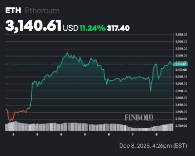 截至发稿时,以太坊交易价格为 3,140 美元,在过去 24 小时内上涨了 3.5%,而从周线来看,ETH 上涨了超过 11%。
