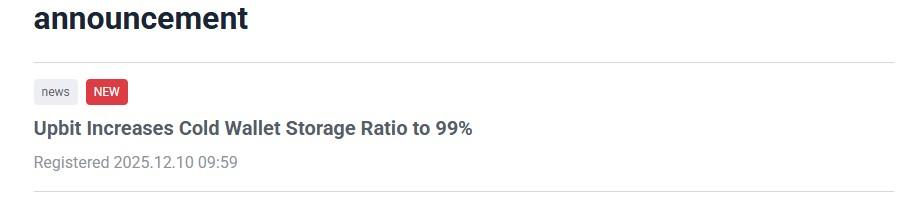 Upbit透露该交易所将把冷钱包存储比例提高到99%,仅保留1%的热钱包——这是韩国本土数字资产交易所中热钱包比例最低的。这一比例超过了韩国《虚拟资产用户保护法》的要求,该法规定交易所至少要将80%的用户资金离线存储。