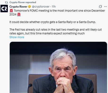 但并非所有人都确信美联储的决定会趋于温和。据Crypto Rover报道.