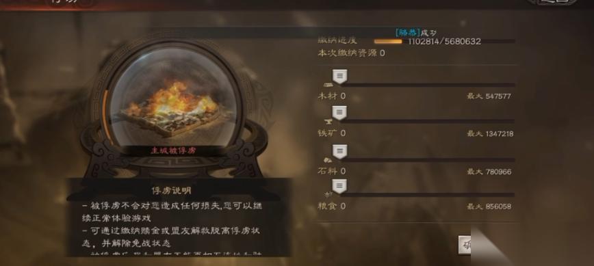 面对诸多限制,及时脱离被俘状态是唯一出路,目前主要有两种可行途径。第一种是缴纳资源赎身,点击游戏界面左下角的被俘按钮即可进入缴纳界面,赎金金额根据你的势力值计算,势力越高所需资源越多,支持分多次缴纳任意类型资源,进度达到100%即可脱困。这种方式适合资源充足但周边无盟友支援的玩家,但可能会延缓自身发展节奏。