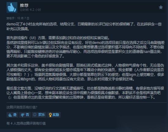 当前试玩Demo已有7条评测,流程大概在1-4小时左右,所有评测均予以好评。