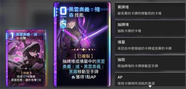 灭:0费状态下可根据手牌提供高效输出,与其他卡牌形成连击。