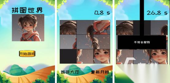 经久不衰的拼图玩法,还有各种不同的素材,任由大家来拼接,比如漂亮的女性角色或者是美丽的风景等等,而开局后这些图片都会被分为九个不同的小碎片,需要在规定的时间之内,将这些小碎片拼接在一起,形成完整的图片。一旦将小碎片放置错误之后,就会看到不符合规则的要求,需要重新开始。