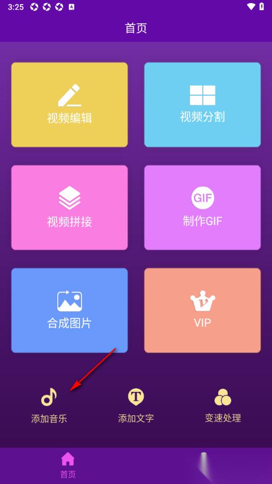 1.当用户进入到视频剪辑师app这款软件之后,在页面上将【添加音乐】点击打开。