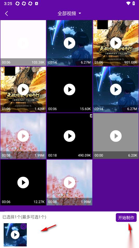 2.在页面上选择要添加音乐的素材,然后点击右下角的【开始制作】按钮。