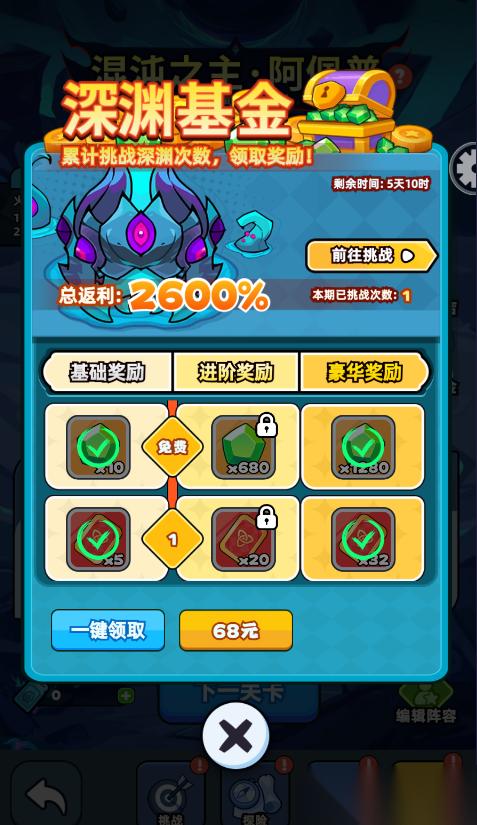 3、每天有3次免费挑战机会,挑战可获得挑战奖励。
