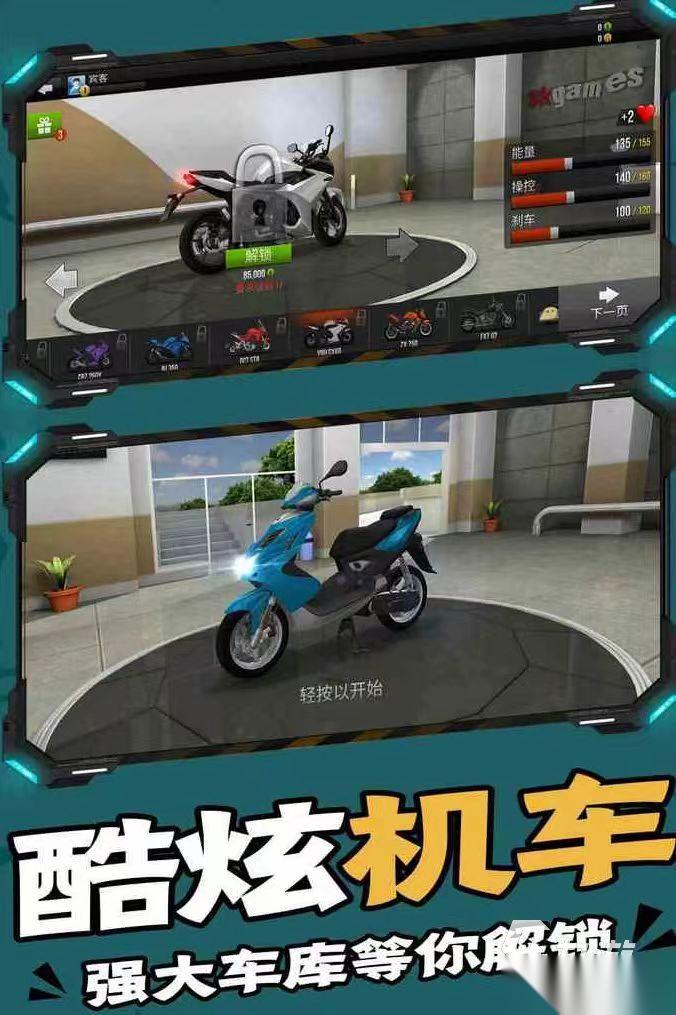 机车一直都是承载着少年心气的代表,在这款《终极摩托》的游戏里,玩家可以体会到摩托的竞速快乐。漂移,转弯,一个个完美的高难度操作,都在展现着玩家的能力。玩家在游戏里,需要驾驶着摩托,躲避着危险和障碍物。针对不同的玩家,游戏里有着不同难度的关卡,玩家可以选择不同难度的山坡,去挑战自我。