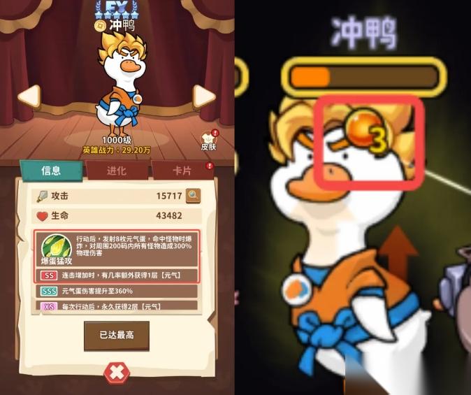 在到达ss阶段时随着连击数的增长,有概率能获得更多元气弹,机器鹅和忍者鹅可的攻击模式可以带来比较高的连击数给冲鸭补充更多的元气蛋。是概率补充的。