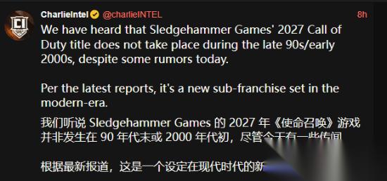 此前,爆料人GhostOfHope曾声称2027年的COD将设定在20世纪90年代末至21世纪初,主打怀旧风格。然而,CharlieIntel随即发布推文指正: