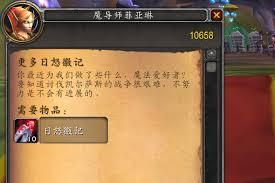 对于联盟玩家来说,在完成某些联盟专属任务时,可能会有 npc 要求提交日怒徽记。同样,部落玩家在其相关的任务进程中也可能遇到类似情况。