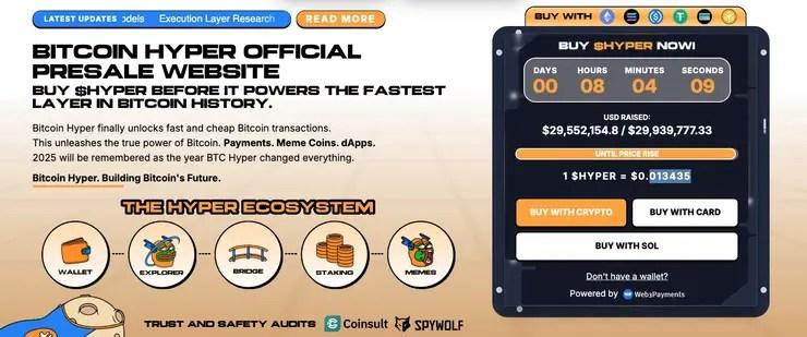 代币 HYPER je dostupný za aktuálnu predpredajnú cenu0.013435 美元. Nákup prebieha priamo naoficiálnej stránkeprojektu po pripojení最佳钱包alebo inej kompatibilnej kryptopeňaženky。 Projekt akceptuje platby v kryptomenách以太坊,BNBa美元.
