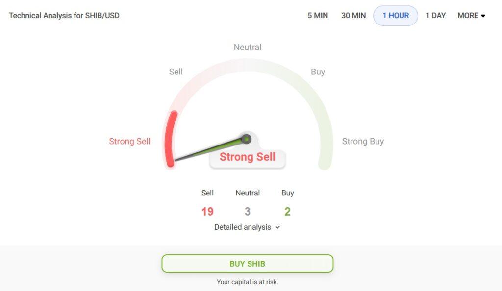 技术指标来自贸易商联盟指出“强烈抛售”。在24位分析师中,19位强烈建议卖出,只有两位敦促交易者在股价低点买入建仓。其余三位则保持中立,建议投资者继续持有Shiba Inu股票。总体而言,SHIB的评级大多为负面,因为它很可能在短时间内血本无归。