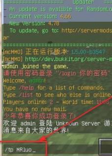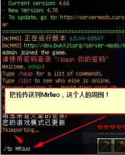 3.按enter键,也就是回车键执行上面的命令,然后就把自己被传送到Mrluo的周围了!