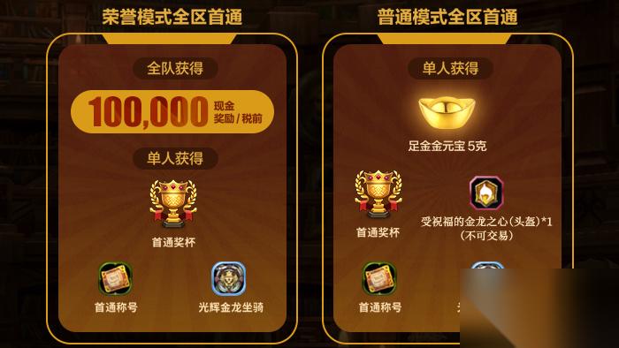 此外,两种模式下各区的首通队成员也可将专为首通活动准备的金龙三件套、专属称号与奖杯收入囊中。
