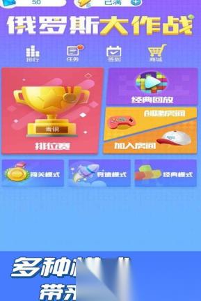 《俄罗斯大作战》里面的话它不再是单人游戏的孤独,大家可以跟其他小伙伴实时进行对抗,双方在屏幕上互相操作,消除方块可以给对方造成一定影响,游戏有实时排行榜,每次获胜都能提升排名,增加整体的竞技性,画面采用卡通的风格,对战时特效也很生动,支持游客登录,不需要注册就能直接匹配对手。