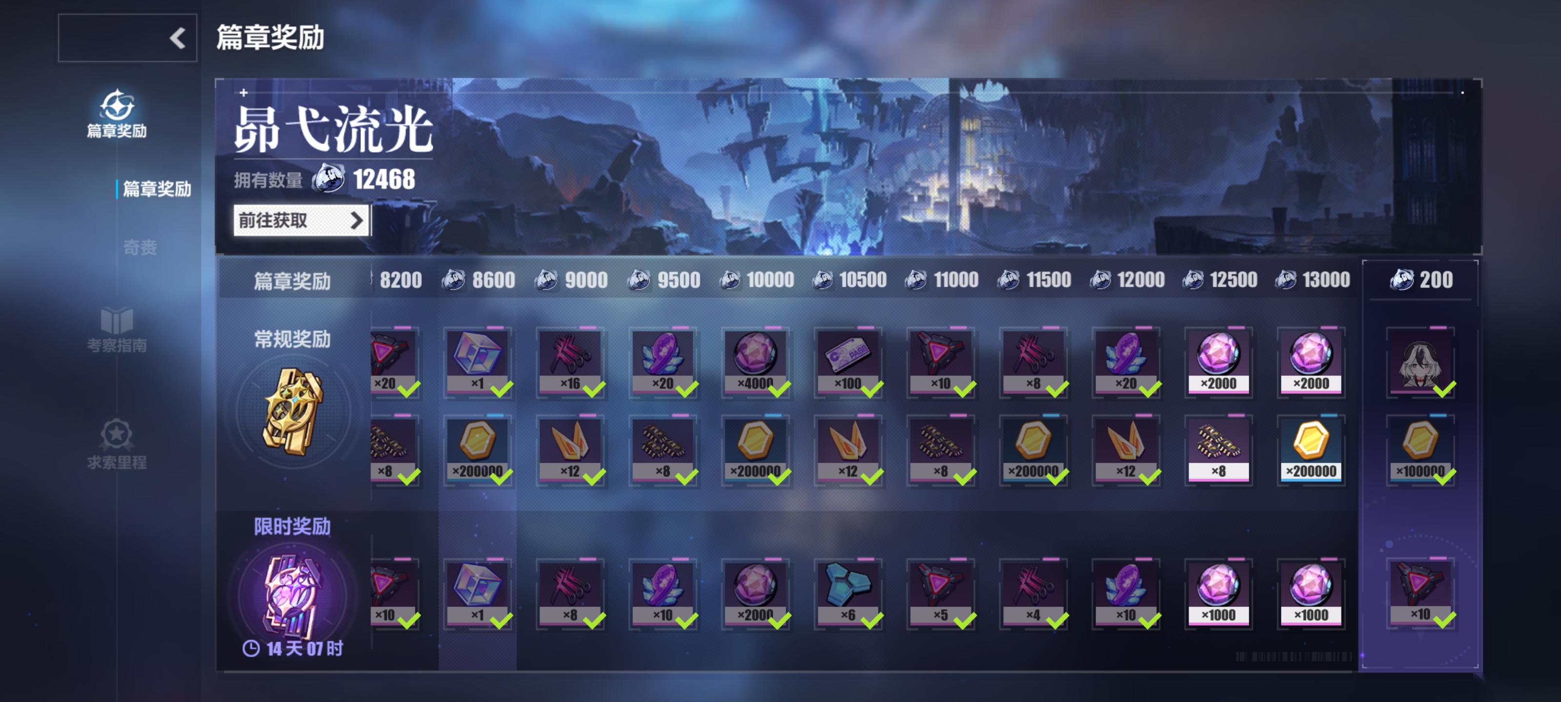 ❸开放世界:樱色轮回和天命总部分为剧情任务和伙伴任务。后崩坏书里为剧情奖励、补给奖励、挑战奖励。