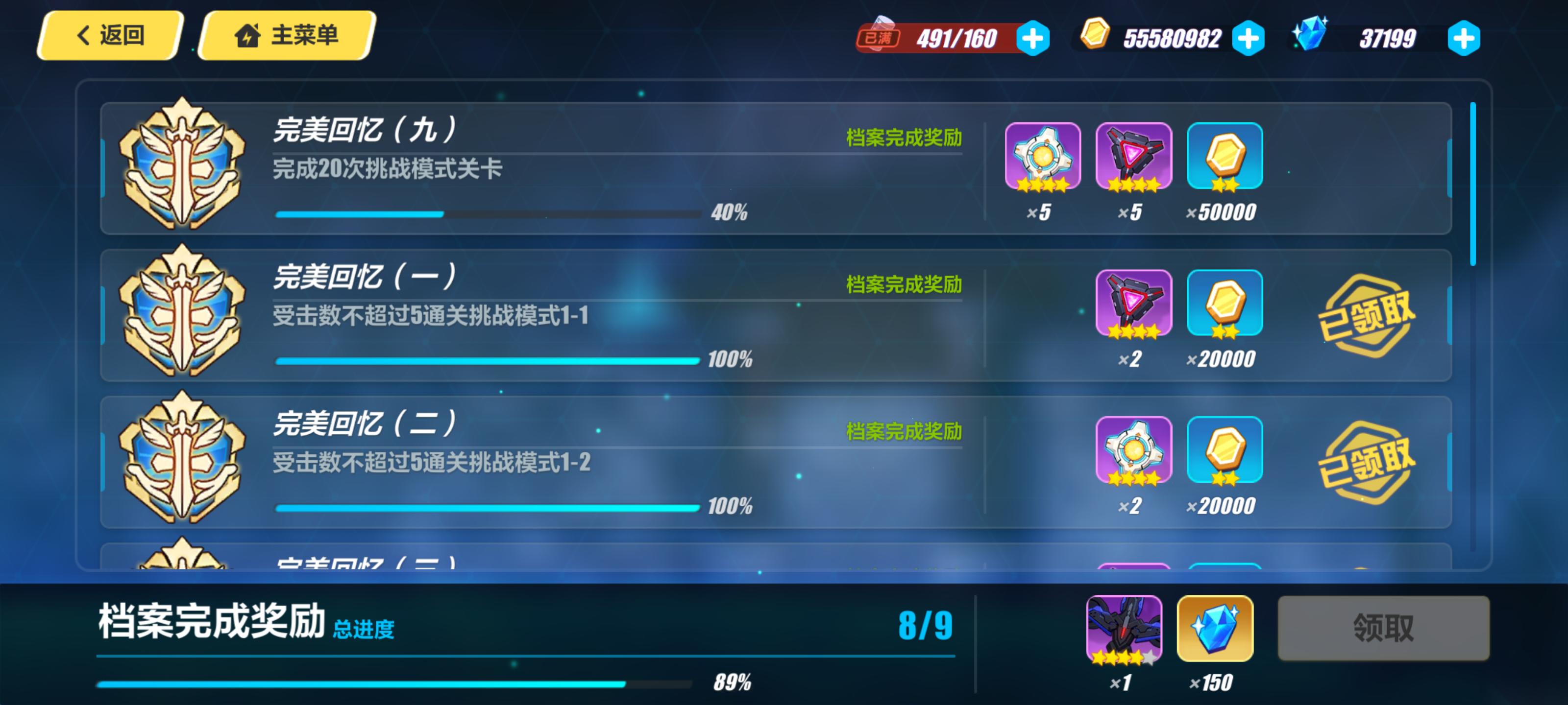 ❷编年史:和主线类似,分剧情模式与挑战模式,有挑战任务和星数奖励,挑战模式另有档案奖励。编年史共120关,合计2400水晶。挑战奖励100%,另共有1050水晶,共计3450水晶。