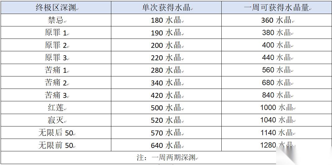 另,每个角色装甲强化15级可以拿200水晶。每个角色浅层序列通关可以拿400水晶。