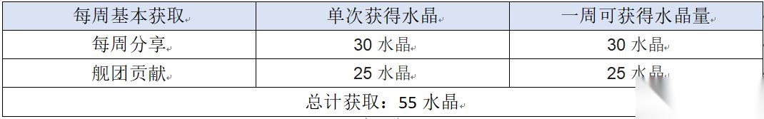 舰团贡献25水晶+60水晶(首次加入舰团奖励)。