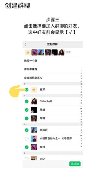 发起群聊是我们最常见的一种建群方式,步骤也非常简单,我们打开微信后,点击右上角的【+】号,然后就能看到【发起群聊】的入口,点击后,我们只要选择你想要拉入群聊的微信好友,最后点击右上角的【完成】就可以了,如图1所示;