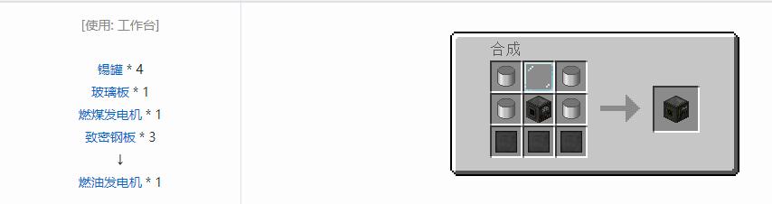 通过消耗燃料产生电力,能容纳4000mB单一种类燃料,被拆除时不保留其中的燃料。