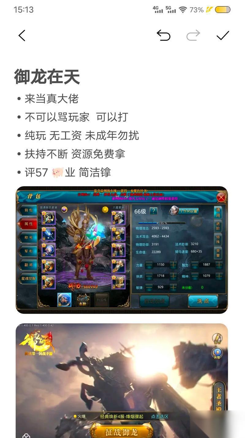 随着智能手机的普及,手游成为现代人消遣娱乐的重要方式之一。在众多手游中,御龙在天以其宏大的历史背景、丰富的游戏内容和深度的策略玩法吸引了大量的玩家。对于新手玩家来说,游戏的操作难度是他们最关心的问题之一。本文将从多个角度介绍御龙在天手游的操作难度,并提供一份详尽的新手入门指南,帮助新手玩家快速入门,掌握游戏的基本操作和策略。