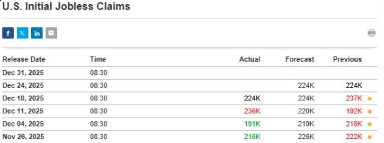 美国首次申请失业救济人数报告将于美国东部时间今天上午8:30(世界协调时13:30)发布,这将是假期前美国劳动力市场最后一项重要指标。鉴于市场已承压,投资者正密切关注该数据,看它能否增强经济韧性,还是预示着经济进一步放缓。