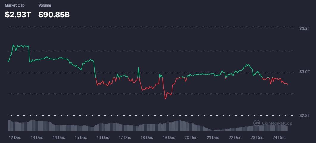 相比之下,加密货币市场走弱。过去24小时内,加密货币市场总市值下跌1.06%,延续了此前1.7%的周跌幅。