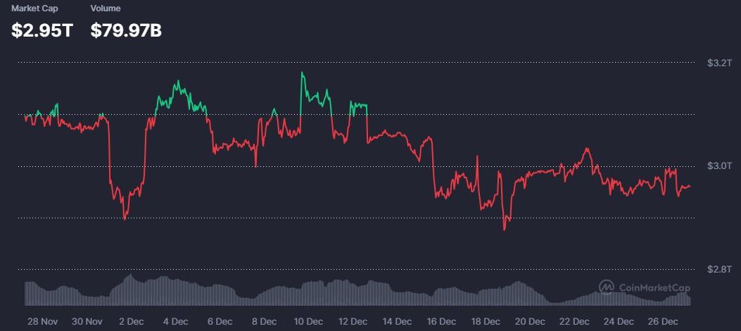当前统计数据:加密货币市场在24小时内下跌1.16%,30天累计跌幅达4.75%。比特币下跌1.55%至87.402美元,以太坊下跌1.36%至2,927美元。