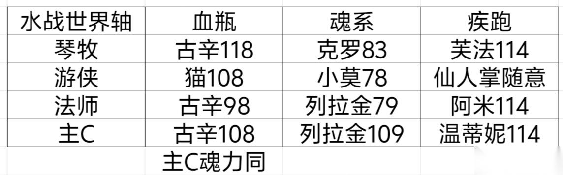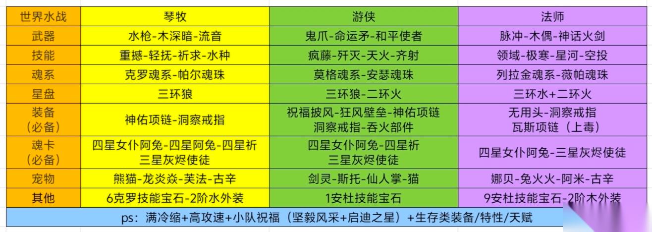 新水战世界表现应该会很亮眼,毕竟世界有许多特化加成,辅助要用到领域法辅替换天国牧,因为水战世界护甲套更强,故本篇以护甲套展开