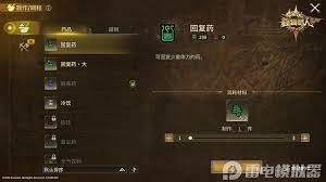 当你离开新手村,进入不同的狩猎营地后,也能找到商人。每个营地的商人位置略有不同,但大致都在营地的固定区域。这里的商人会提供更丰富的物资,有提升武器攻击力的砥石,能让你的武器保持良好的锋利度。还有各种箭矢,如普通箭矢、毒箭矢等,满足不同的狩猎需求。此外,还会有一些适合在野外长时间生存的道具,比如简易帐篷,能让你在野外快速搭建休息场所。