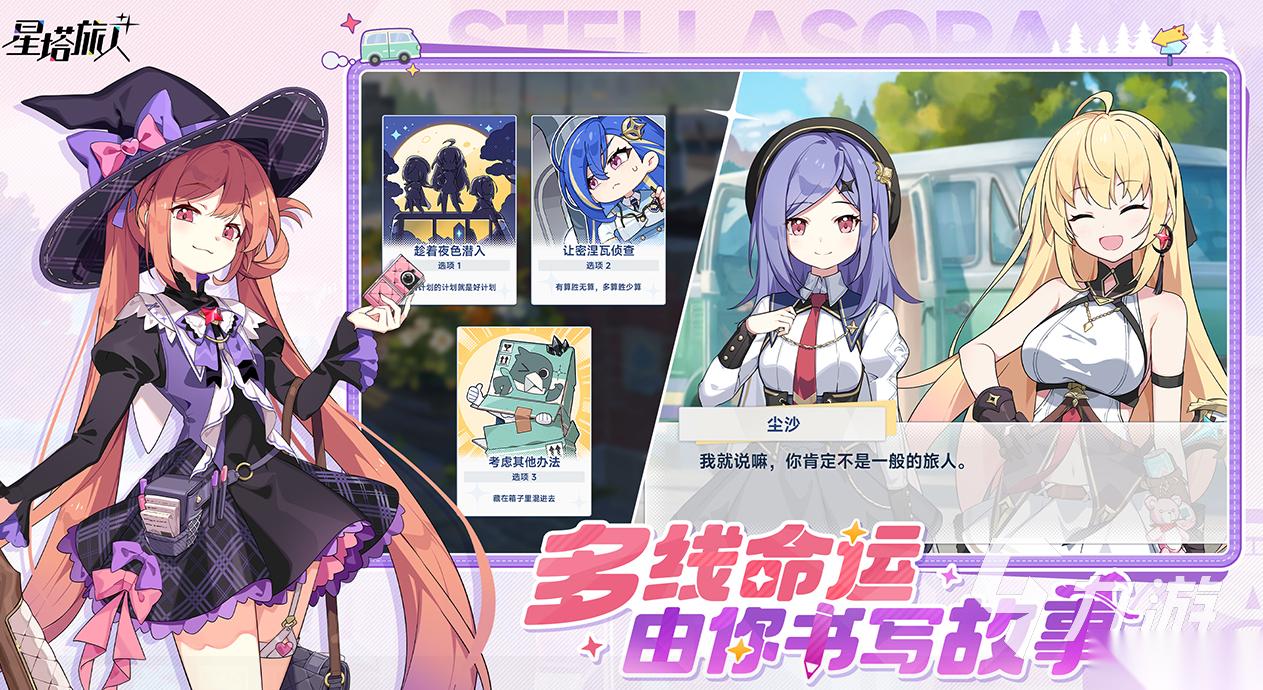 从永恒沉睡中醒来,面前却是骑士挥舞翻盖手机、女巫骑扫帚用相机拍照的奇幻与复古交融世界。你作为魔王与旅人少女们组队攀登星塔,探索被历史尘封的秘密。战斗采用俯视角轻动作机制,角色会自动攻击敌人,你需要移动角色躲避攻击,释放技能与大招。爬塔带有轻度肉鸽元素,击败敌人后能在3种角色潜能里选择一项来加强,需为角色装备秘纹并通过战斗获取音符激活增益属性。