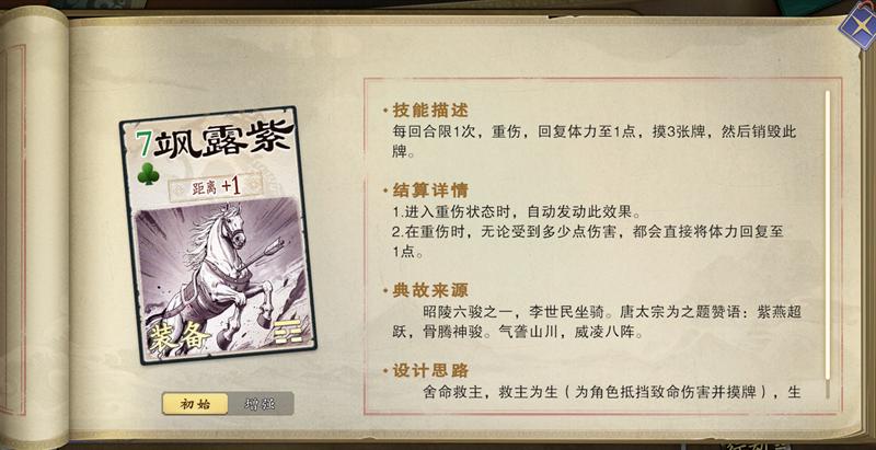 飒露紫属于保命坐骑,重伤时可以恢复体力、摸牌,这时候概率还能摸到桃,继续苟延残喘。如果对方有飒露紫,建议先劫营、破阵下掉,再攻击,可以起到更好的效果。
